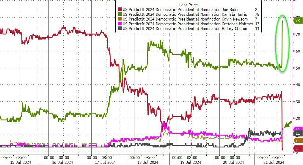 Kamala Harris' odds of being the 2024 Democratic nominee just spiked - though Biden notably did not endorse her in his letter.