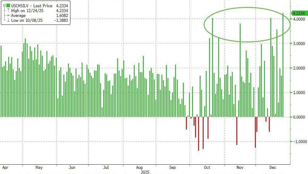 …That question is now being priced in. As long as the 1-year silver swap minus US rates remains below the red line, silver’s upside pressure continues. No one knows where supply and demand will reconnect. … ”