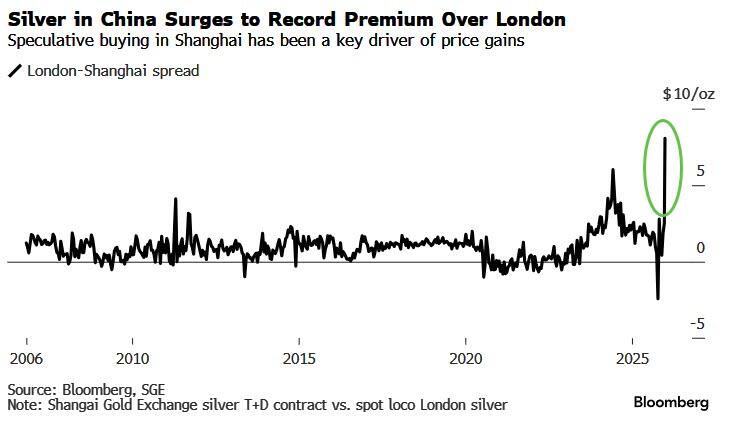 The white metal fell by more than 6% as it took a roller-coaster ride Monday after earlier hitting $84 an ounce. Surging Chinese investment demand has pulled the metal higher, with premiums for spot silver in Shanghai rising above $8 an ounce over London prices, the biggest spread on record. Elon Musk fed the early momentum with his reply to a tweet about Chinese export restrictions due to start on Thursday, saying on X over the weekend: “This is not good. Silver is needed in many industrial processes.”