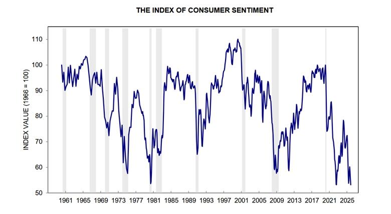 Remember when Obama ran on “Change”? He was followed by Trump, who ran twice on a similar message. The economic system remains broken for many Americans, and they are voicing concerns about affordability in election polls and sentiment surveys. Look at the graph below. According to the University of Michigan, consumer sentiment is at its lowest point since at least 1960!
